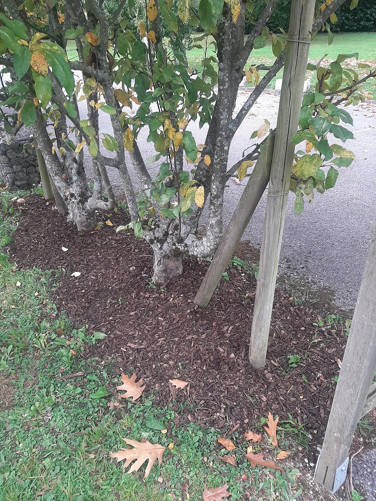 Compostage des déchets de restauration de l'établissement avec un beau 1er compost maturé épandu par des élèves volontaires (Martin et Zack, de 1ère SAPAT) sous les pommiers de l'établissement.